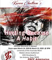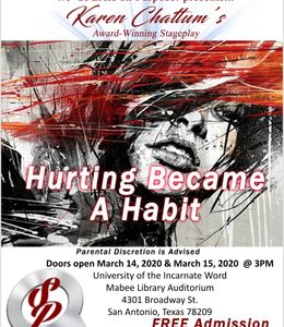 "Karen Chattum’s Hurting Became A Habit" offers a creative narrative therapy with a comical twist on the insight of low self-esteem and self-harming birthed by the stigma of HIV, pain of rape, incest, molestation and lack of parental support. The storyline is based on six characters, a counselor, case manager and the four residents of a transitional home for women striving to re-author their stories and ultimately gain tools that will aid them in dealing with life on life’s terms. Join us as Journey, Ms. Sherrie, Kaweah, Leah, Daesha, Patience and Ms. Jewel engage you in their laughs, tears, experiences, realizations and testimonies, while empowering you with knowledge, awareness and hope.